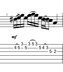 我们说了。一出大调手型就和和声内音有关系了,如果我们弹A属七这个和声内音就变成1 b7 5 3 1 ,你看我到5之间一加#4,马上就出这个感觉。