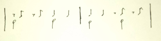有时候,我们可以在原来的节奏框架内做一些变形,例如将第一拍反拍变成一个长音、重音: