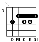 D9#11就是在一个D的属九和弦再加上一个升十一音,当然,这个升十一音我们也可以记成降五音,弹出来都是一样的。